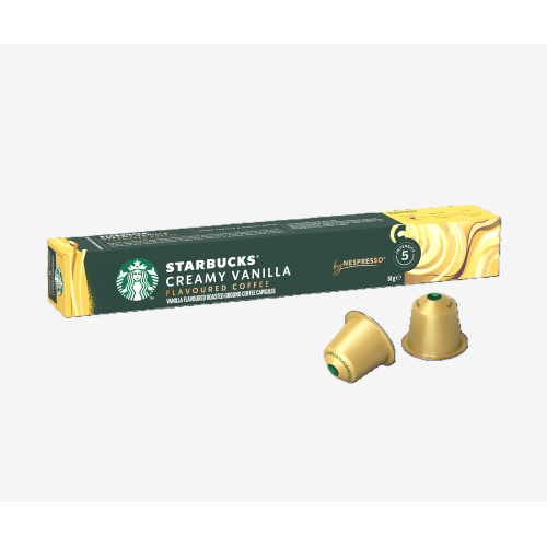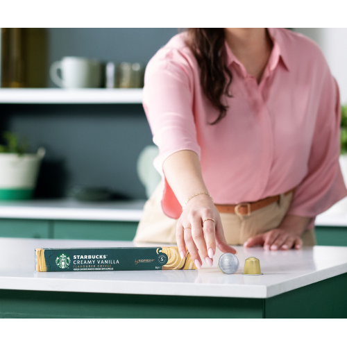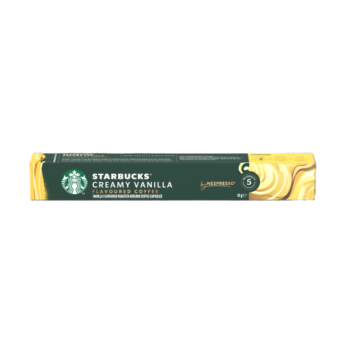 Sorseggia il delizioso caffè aromatizzato Starbucks® Creamy Vanilla By Nespresso®, realizzato utilizzando gli stessi chicchi di caffè 100% Arabica utilizzati nelle caffetterie Starbucks®.