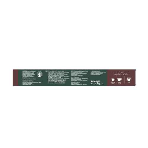 Arricchisci il tuo rituale del caffè con Starbucks® Italian Style Roast By Nespresso®, una miscela realizzate con gli stessi chicchi di caffè 100% Arabica utilizzati nelle caffetterie Starbucks®. Questa tostatura scura e intensa, infusa con note tostate e dolci, è stata sapientemente realizzata per esaltarne i sapori e l'intensità, permettendoti di creare la tua tazza di caffè Starbucks® preferita da gustare a casa. Queste capsule sono realizzate utilizzando l'80% di alluminio riciclato. L'alluminio protegge gli aromi e il sapore di tutti i nostri caffè regalando l'esperienza del caffè Starbucks® che ami. Non solo, l’alluminio è riciclabile all’infinito. Gustalo a casa tua.
