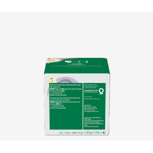 Sapientemente miscelata con latte intero e il gusto goloso di cioccolato bianco, è completata da una soffice schiuma che ti permetterà di gustare una squisita bevanda Starbucks.