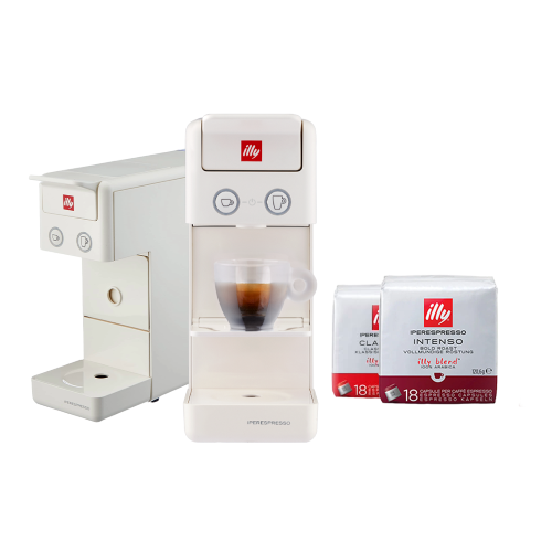 1 PZ - MACCHINA A CAPSULE IPERESPRESSO ILLY BIANCA Y3.3 CON 7 CAPSULE INTENSO E 7 CLASSICO IN OMAGGIO (Iperespresso® - Bianca)