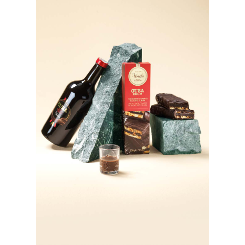 Liquore di cacao e Rhum, particolare per il carattere del cioccolato e per la persistenza della concia originale Caraibica.